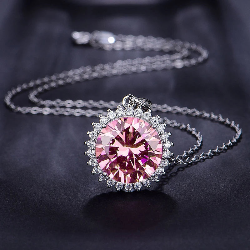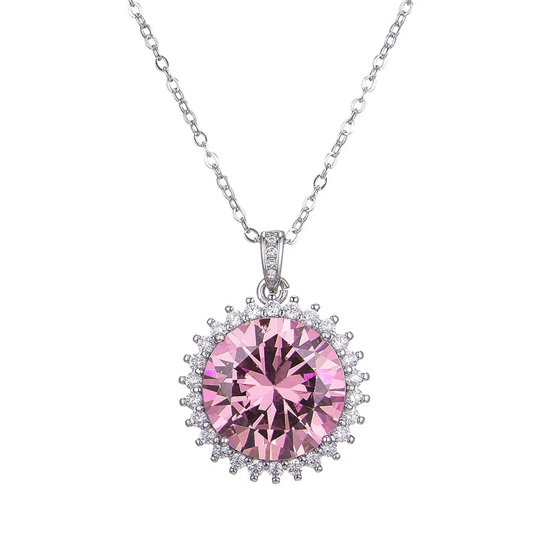 Huitan Fancy Round Pink Cubic Zirconia Pendant Necklace Exquisite Neck Accessories For Women Jewelry
