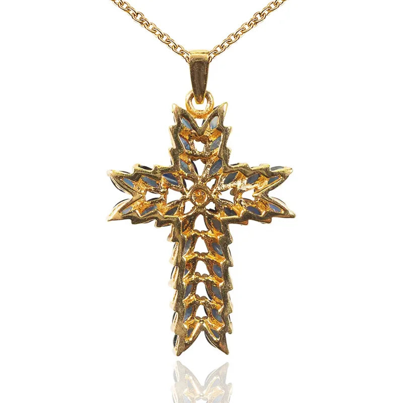 Huitan Luxury AAA Navy Color Cubic Zircon Cross Pendant Necklaces Delicate Women Stylish Accessories